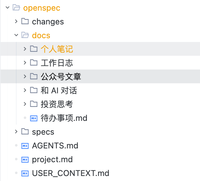 这部分内容会构成 AI 前期对我的基本理解。所以我针对这部分内容,单独创建了 5 个目录。