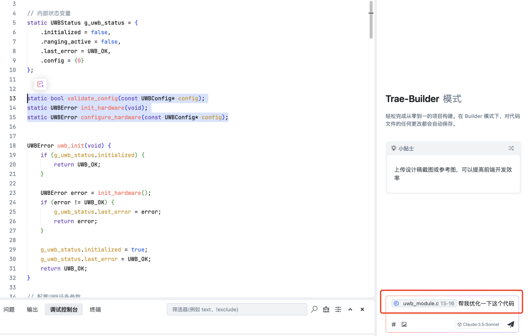 Trae 此时会直接定位到你的 A 文件具体内容,然后根据你具体的指令来进行文件修改。