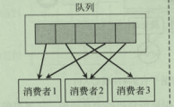 队列模式,数据会平均的推送给消费组中的消费成员,多个消费者读取消息队列,每条消息只发送给一个消费者;