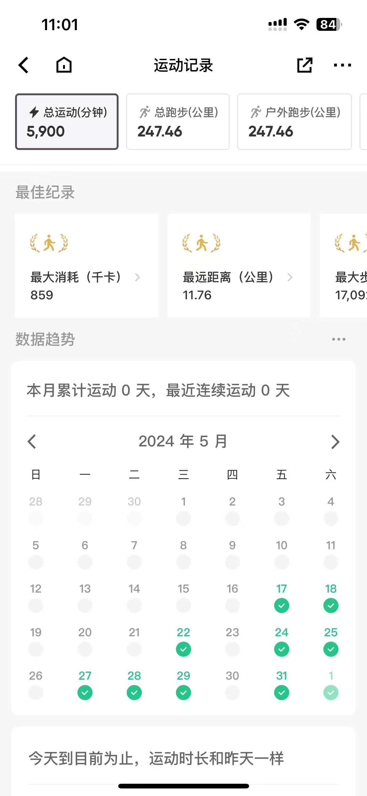 明年我会继续坚持,还是至少坚持 4 个月,因为我感觉三伏天那段时间跑步是最好的,掉秤是真快啊。所以至少坚持四个月,希望这个目标可以适当超标,嘿嘿。