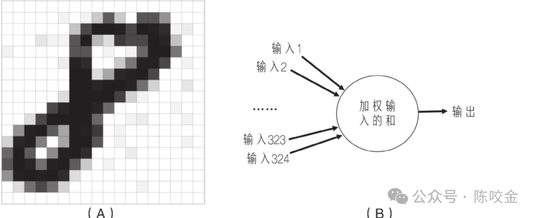 注:18×18像素图像中的每个像素对应感知机的一个输入,该感知机共有324(18×18)个输入