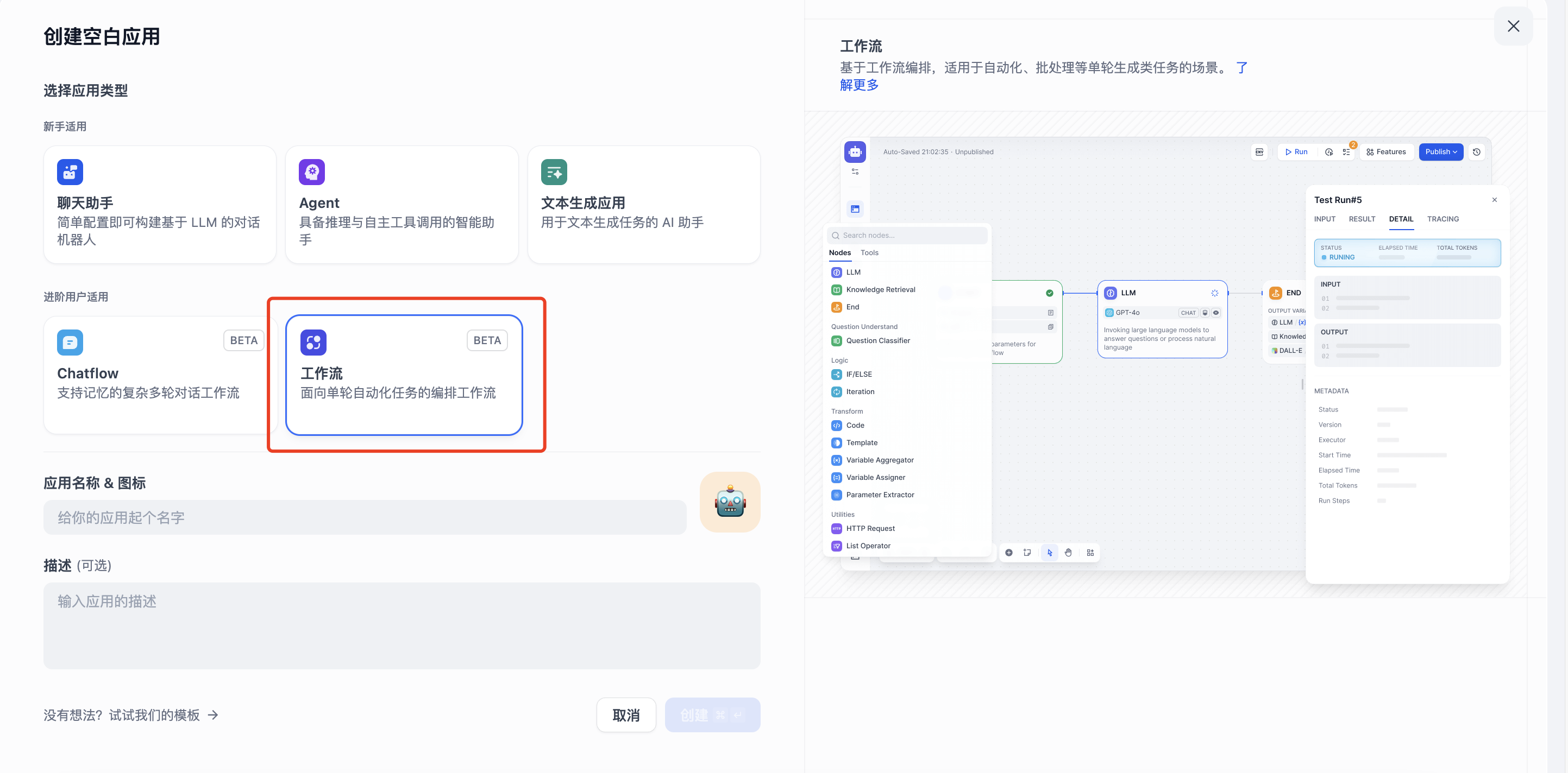 通过工作流,Dify 可以自动执行一系列复杂任务,比如数据分析、报告生成、资源调度甚至是跨平台操作。