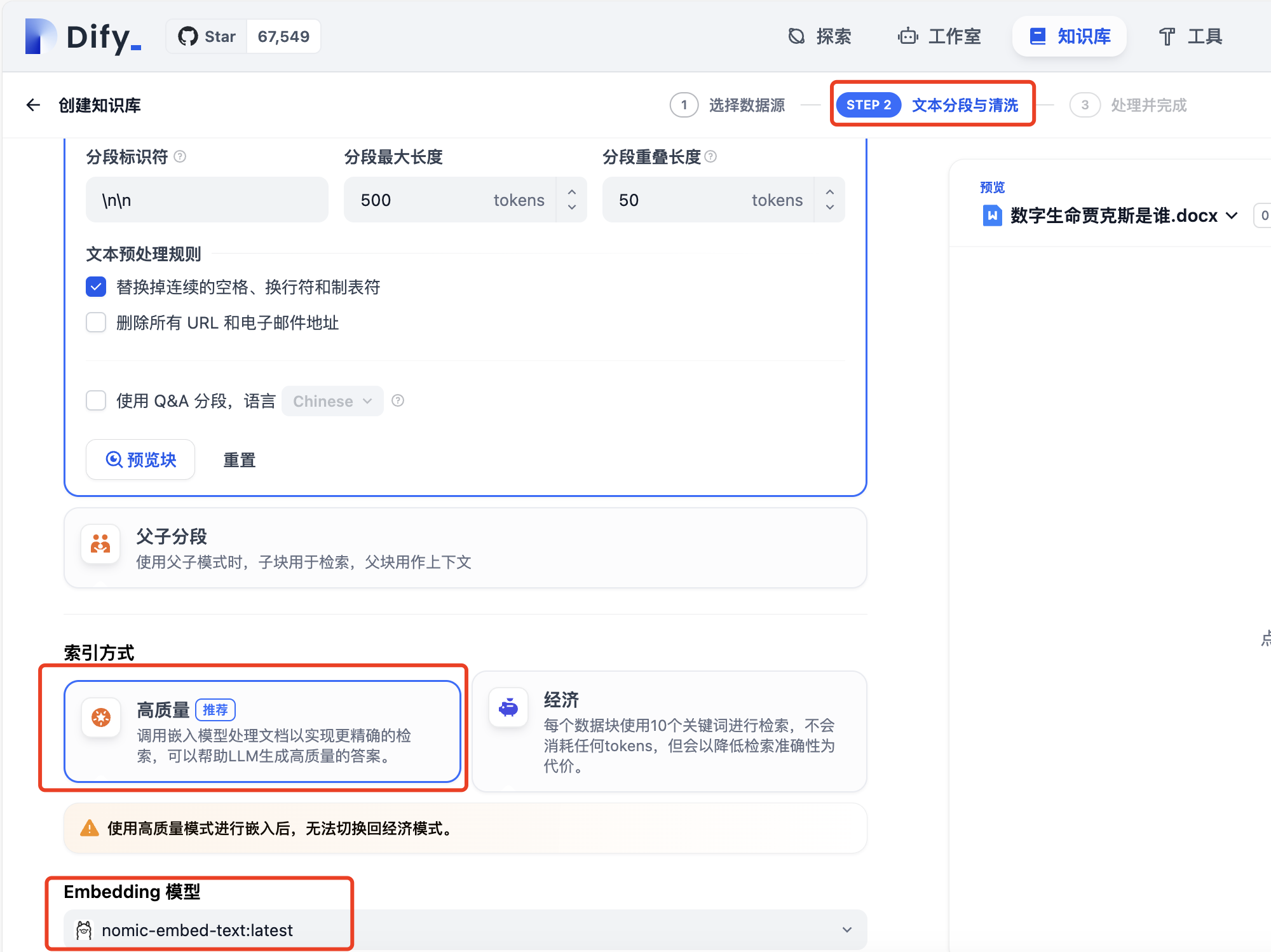 文本分段与清洗中选择使用我们的nomic-embed-text模型进行清洗
